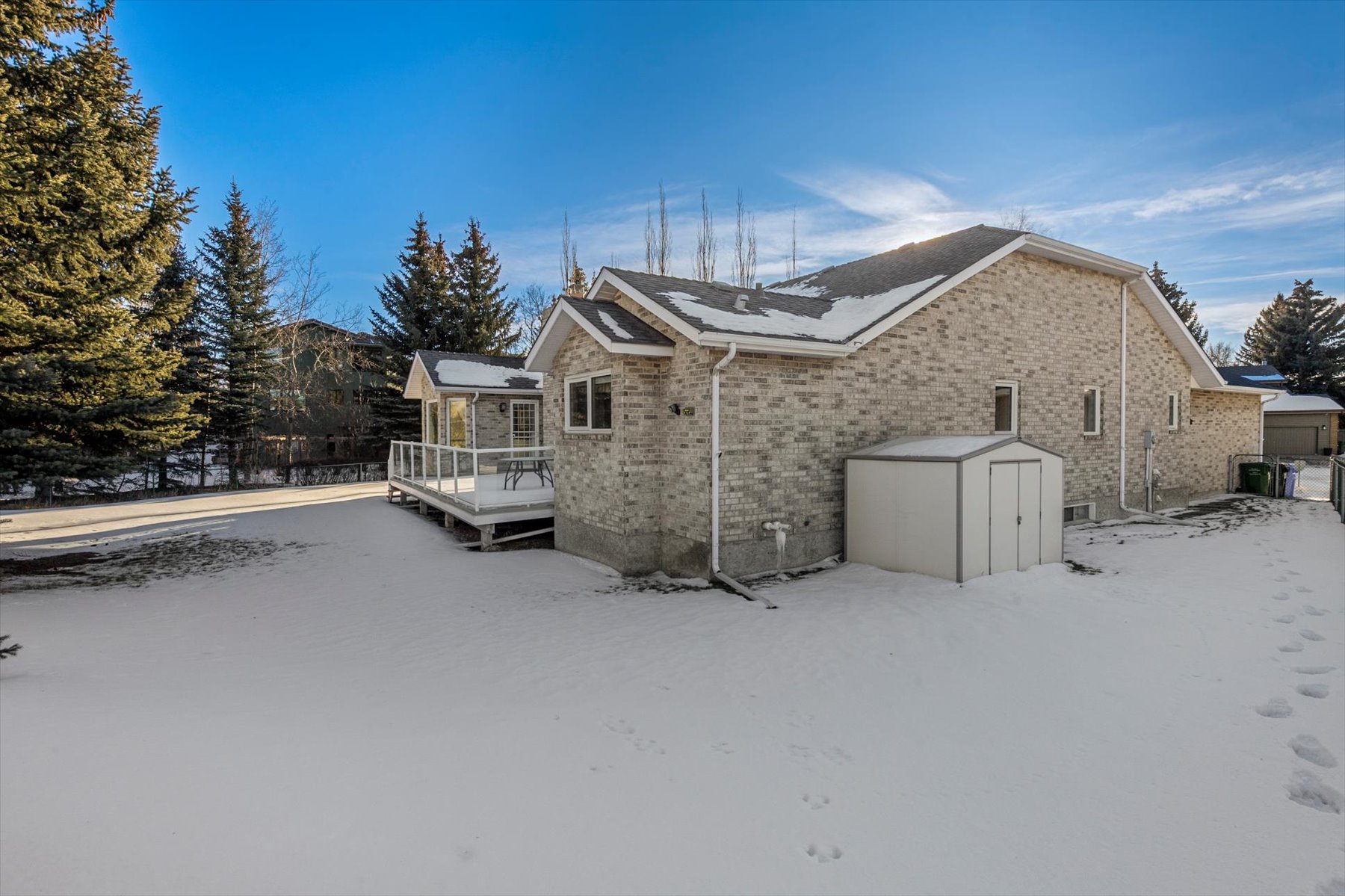 Description: Located on a quiet crescent in Varsity Estates, this classic all-brick 2,480 sq ft executive bungalow with 5 bedrooms and 3 full bathrooms reflects years of thoughtful ownership and steady investment. Vaulted ceilings and architectural lines create an immediate sense of openness, while rich Brazilian hardwood floors add warmth and continuity throughout the main living areas. The formal living and dining rooms are bright and inviting, and the family room offers a comfortable gathering space centered around a brick gas fireplace. The kitchen features updated cabinetry, countertops, flooring, and appliances, and flows naturally into a sun-filled breakfast nook framed by large windows overlooking the spacious backyard. Morning coffee here feels private and peaceful, surrounded by mature trees and established landscaping. The main floor includes a spacious Master bedroom complete with a large walk-in closet and ensuite featuring a soaker tub and separate shower, a generously sized second bedroom with access to the main floor 4pc bath, the home office with French doors can also be used as a bedroom, and a laundry room. The fully developed lower level adds two additional bedrooms, a 4 pc bath, and expansive space for recreation, media, or extended family living, with a rough-in for a future wet bar offering flexibility for customization. Over the years, the sellers have made substantial upgrades to ensure long-term comfortand reliability. All bathrooms and the laundry area have been updated. Triple-pane windows and exterior doors were installed in 2022, Poly-B plumbing was fully replaced in 2021, and two high-efficiency furnaces, complemented by a high-efficiency tankless hot water system in December 2025. The oversized pie lot boasts an underground sprinkler system that is maintained annually. The security system has been updated with outside cameras. This is a well-cared-for home in one of Calgary’s most established communities. Located close to highly regarded schools, parks, pathways,transit, Market Mall, the University of Calgary and Foothills Medical Centre, this home offers both everyday convenience and long-term desirability.