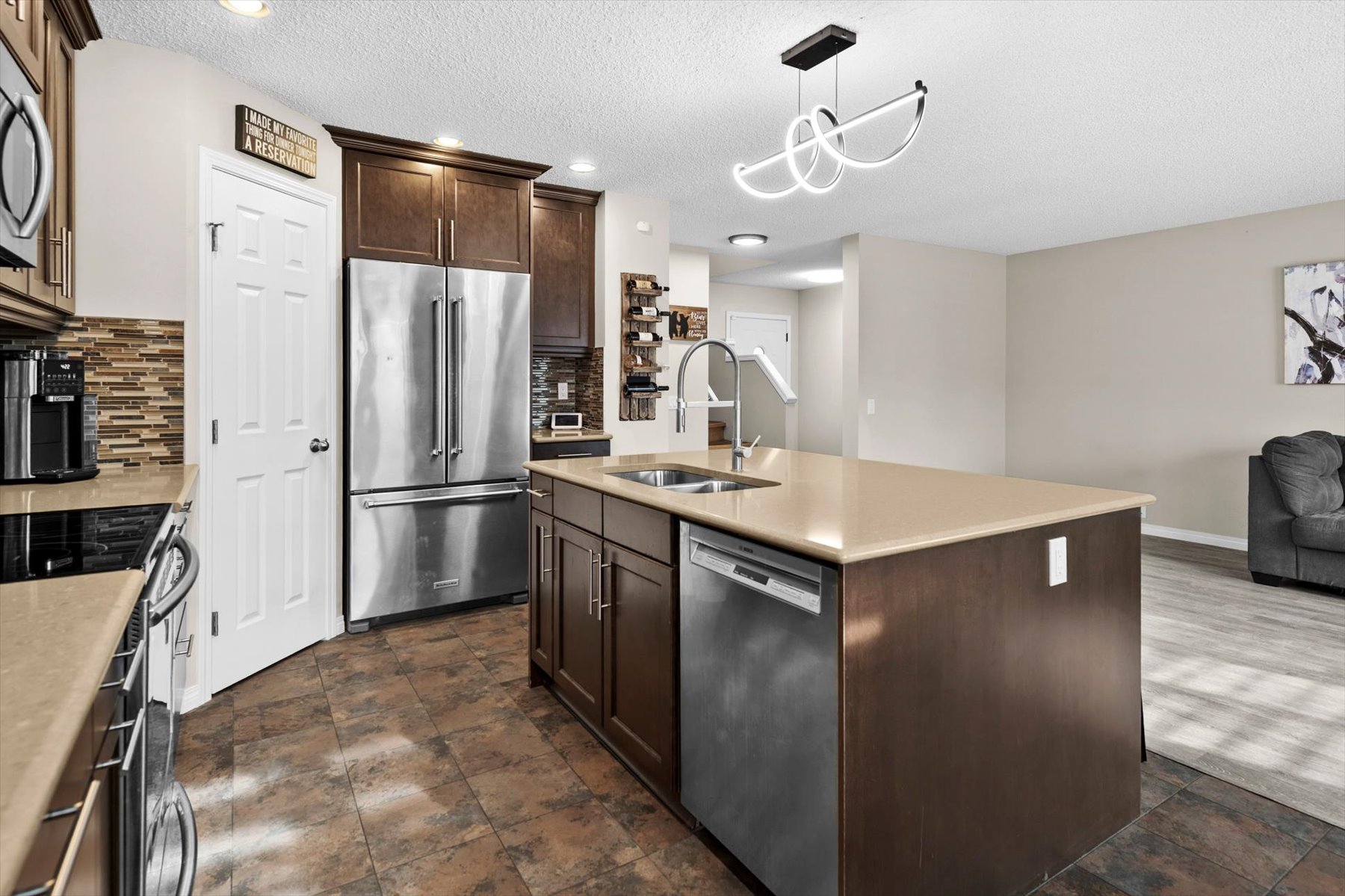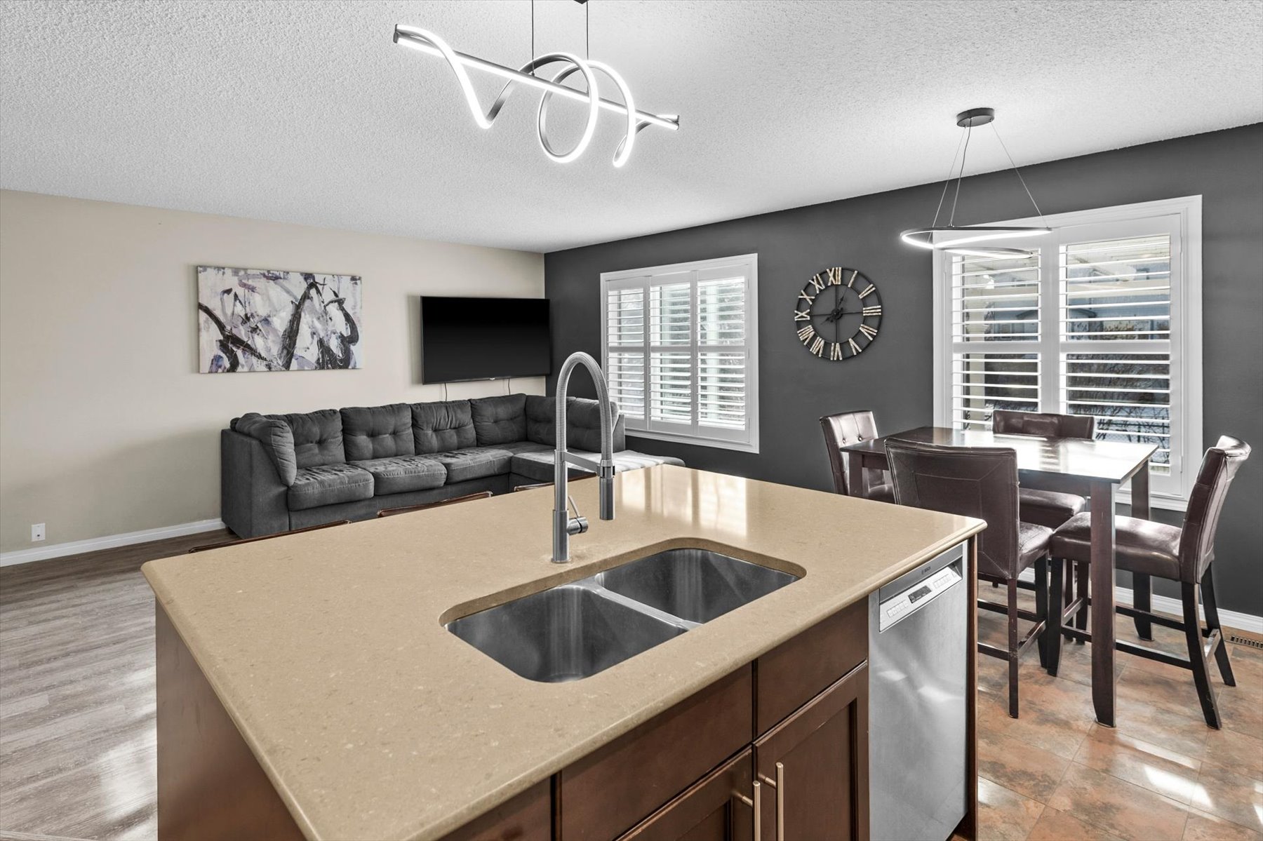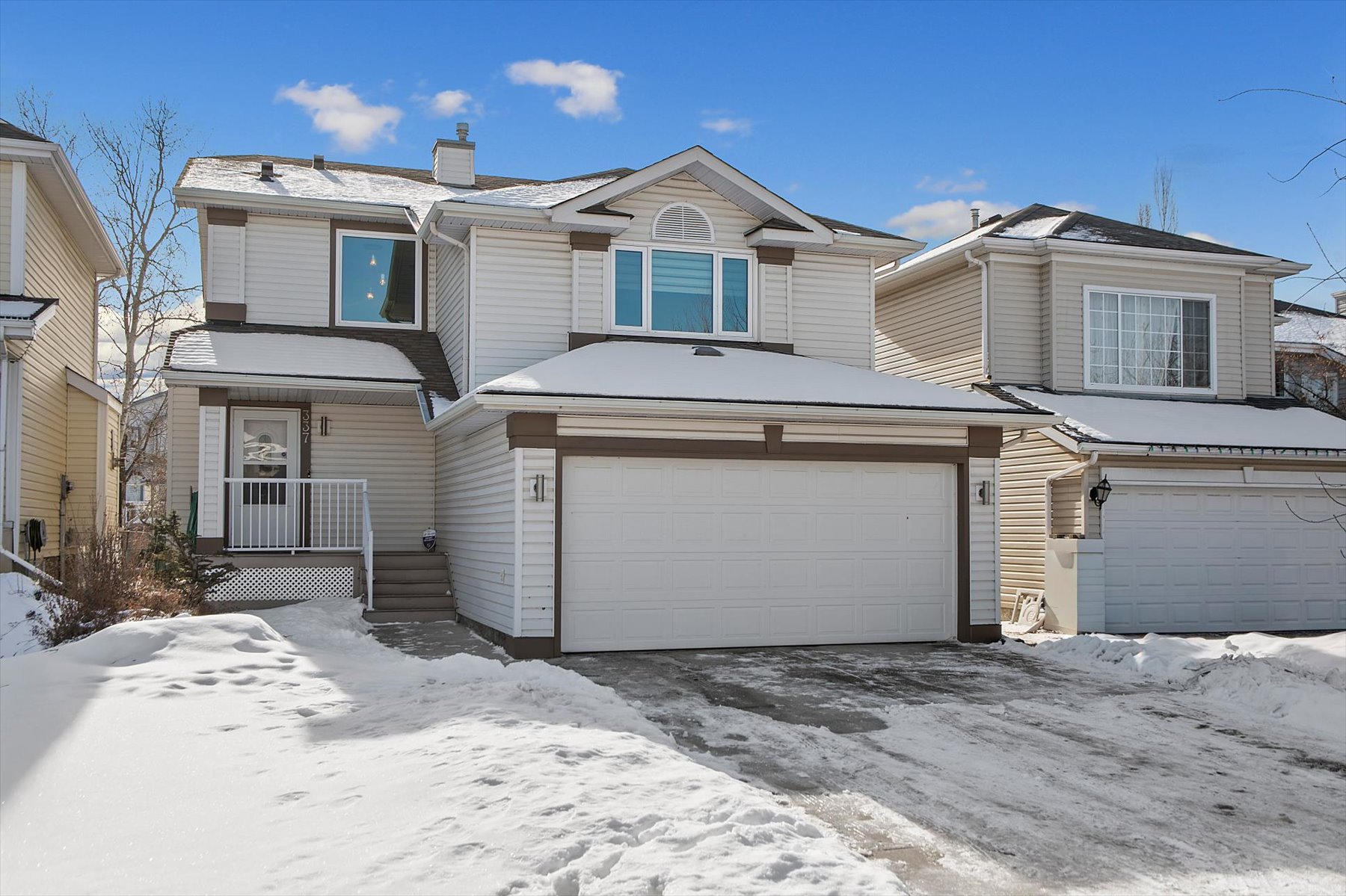 Description: Beautiful two-storey home in Douglasdale offering 4 bedrooms (3 up, 1 down), 3 full bathrooms, and a double attached garage.  The main level welcomes you with a spacious foyer leading into an open-concept kitchen featuring quartz countertops, premium appliances, and updated lighting. The kitchen overlooks the living room with new vinyl plank flooring (Feb 2026) creating a bright and functional space for everyday living and entertaining. Step outside from this level to a low-maintenance vinyl deck overlooking the fully fenced South facing yard with walking paths just outside the fence. The backyard is private and beautifully landscaped, with lilac bushes along the rear providing excellent privacy and a peaceful setting. Upstairs, the primary retreat includes a walk-in closet and a 3-piece ensuite. Two additional bedrooms and a 4-piece main bath complete the upper level. (One bedroom is currently used as a dressing room; the freestanding wardrobes are not attached and will be removed to restore it as a full bedroom.) A bright, spacious bonus room finishes this floor. The fully developed lower level offers a comfortable media room, a bright fourth bedroom, and a beautiful 3-piece bathroom.  A/C added (2021) as well as new lighting throughout home. Before the sellers took possession in 2019,the original owners completed key upgrades including Lux windows throughout the home and Malarkey Legacy 50-year shingles. All within walking distance to transit, schools, Quarry Park, playgrounds, and the Bow River pathway system, with nearby skating rinks and tennis courts. Easy access to Glenmore and Deerfoot.