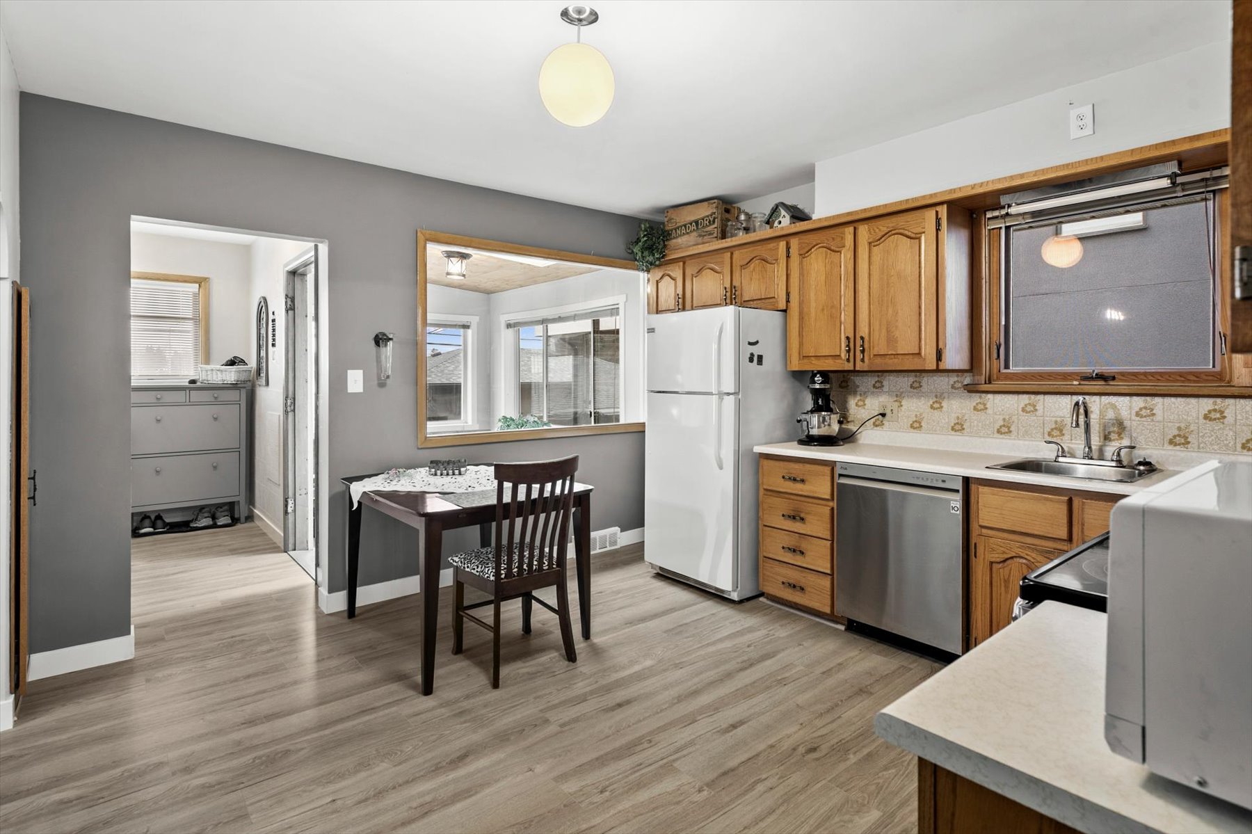 Description: Warm and inviting, solidly built 1954 raised bungalow located in the community of Renfrew. This beautifully maintained home offers over 1,300 sq. ft. above grade on a gorgeous 50’ x 120’ fenced lot. The main floor features a spacious front living room, two bedrooms, four-piece bath, large open kitchen, and a generous dining area, ideal for family living or entertaining. The fully finished lower level offers two oversized bedrooms (note large windows and black out blinds), renovated three-piece bath, and a very large family room with large windows that allow an abundance of natural light. The rear yard is large and fully fenced, complete with a hot tub, double detached garage (24′ 10″ x 22′), and additional RV parking. Recent upgrades include painted interior throughout (2023), six new vinyl windows (four on the main level and two downstairs), luxury vinyl plank flooring throughout the main floor, hot water tank (2022), high-efficiency furnace (2018), renovated lower-level bathroom (2022), back fence (2022), back deck (2021) and shingles replaced in 2016. Ideally located close to downtown, parks and pathways, the Bow River, transit,shopping, and schools, with the junior high and high school just blocks away, this property offers both comfort and convenience in a highly desirable location